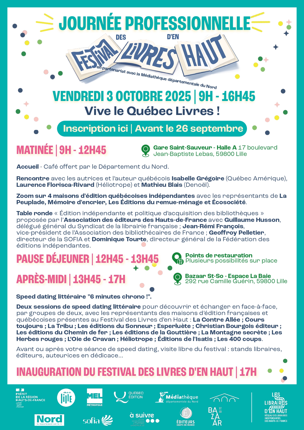 Cette journée autour de « L’auteur·rice dans tous ses états ! » se déroulera le vendredi 3 octobre 2025 au Bazaar St So et à la Gare Saint-Sauveur, à Lille.